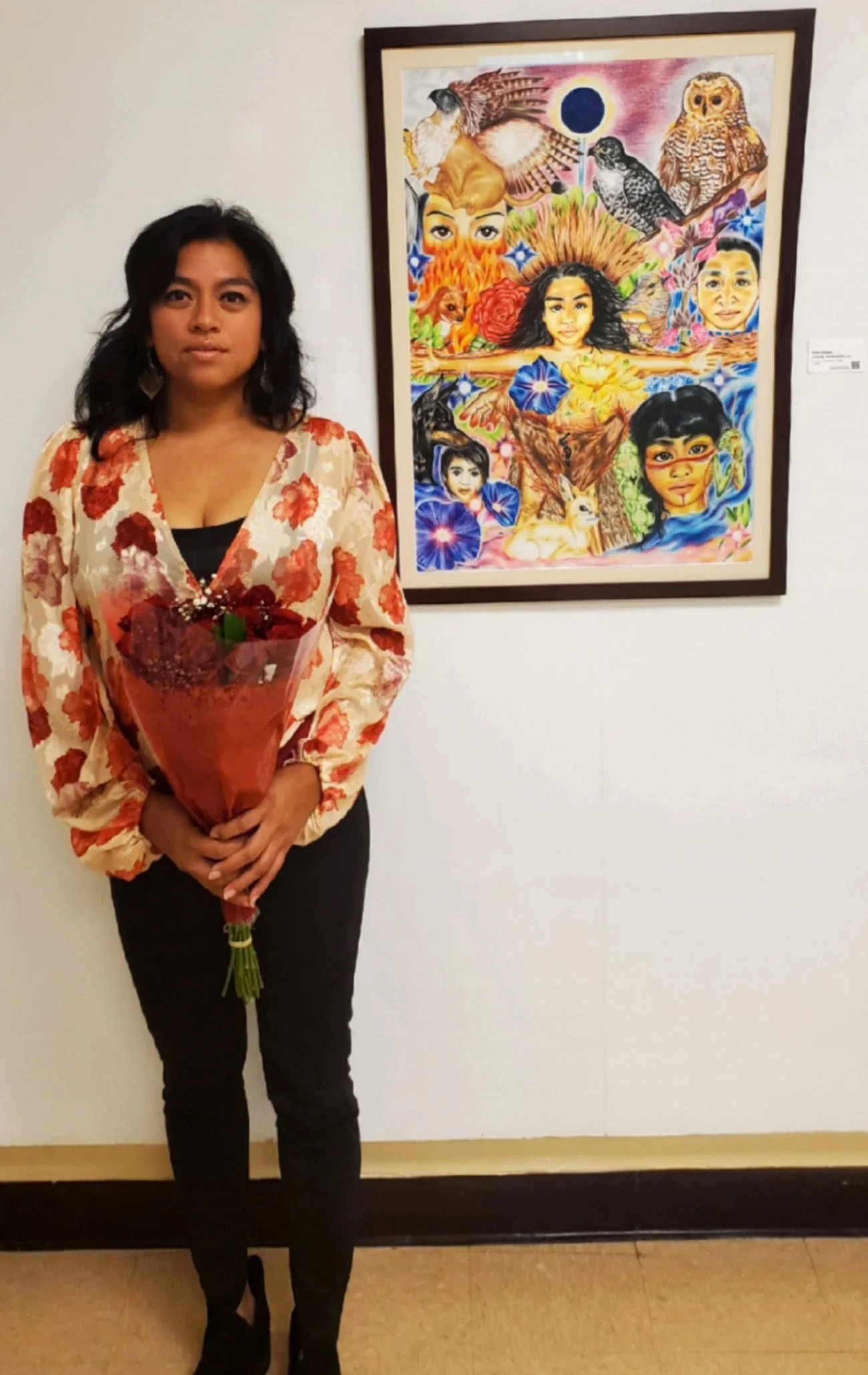 We would like to congratulate Rima Villarreal, who works in our office, for being asked to contribute her art to an exhibit called "Árbol De La Vida" (Tree of Life) at the Mexican Consulate in Oxnard. Ms. Rima tells us, "The art is displayed in a waiting room, where adults, children, and families await assistance and decisions on myriad issues, some grave and life-changing. The Consulate indicated that they serve an approximation of 400 individuals daily. It touches me that the art showcased will mirror and empower those being served. The first artist I met during the hanging of the works showed me her painting of a woman in traditional Purepecha dress. It was a beautiful synchrony as that is one of the two primary indigenous tribes I descend from. The pieces I have in the gallery are portrait