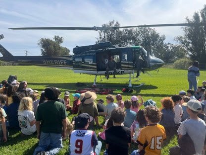 On Tuesday we were visited by the Sheriff Department's Search and Rescue helicopter. The two deputy sheriffs landed the helicopter on the field as students watched from the black top. They gave a wonderful presentation about how they came to be in the Sheriff's department and invited us to come closer and look at the helicopter. The students were very engaged and excited! We are grateful to South Coast Montessori for including us.